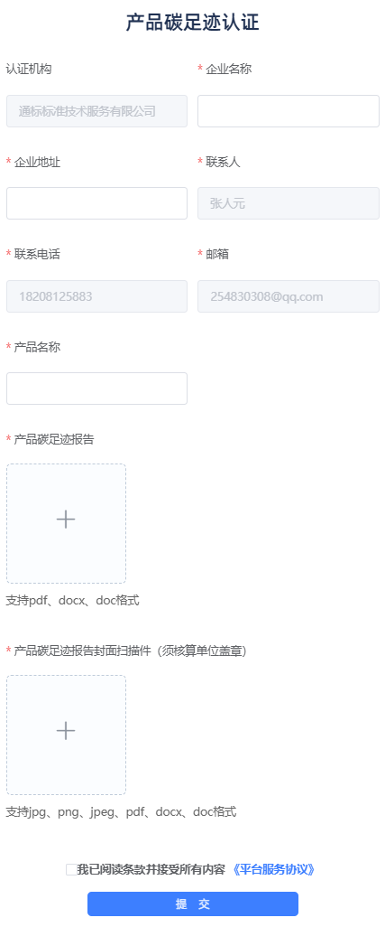 用戶在完成產(chǎn)品碳足跡核算報告后,可通過化云零碳平臺“產(chǎn)品碳足跡認(rèn)證”功能模塊進行產(chǎn)品碳足跡認(rèn)證。在該模塊中,用戶可選擇合適的認(rèn)證機構(gòu),填寫企業(yè)基本信息并上傳已完成的產(chǎn)品碳足跡報告。一旦平臺審核通過,用戶、所選認(rèn)證機構(gòu)及化云零碳平臺將簽署協(xié)議,正式啟動產(chǎn)品碳足跡認(rèn)證工作。